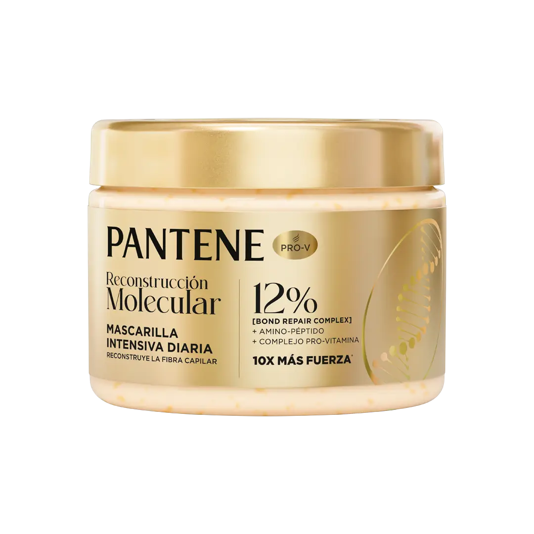La Mascarilla Intensiva Reconstrucción Molecular Pantene ofrece hasta 10x más fuerza° y reconstruye la fibra capilar, siendo ideal para cabellos muy dañados y débiles. Puedes usarla de distintas maneras: como Mascarilla de Tratamiento, aplicándola sobre el cabello húmedo después del shampoo y dejándola actuar de 1 a 5 minutos antes de enjuagar; como Pre-Shampoo, aplicándola antes de lavar el cabello, de medios a puntas, distribuyendo, masajeando y dejándola actuar por al menos 1 minuto; o como Acondicionador, aplicándola sobre el cabello húmedo, dejándola actuar y enjuagando a continuación. °Fuerza debido al quiebre vs shampoo sin ingredientes acondicionantes